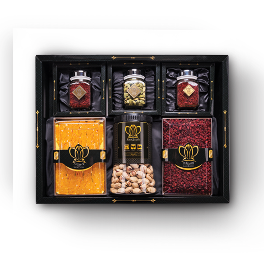 khorasan souvenir pack (nuts – one candy pack – saffron – Cardamom – barberry)